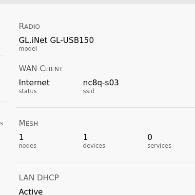 Good Evening. I am working to make my AREDN nodes as portable as possible. Currently I am not able to connect to my Iphone hot-spot or any internet acces point through the WAN Wifi. I have turned off the mesh, saved the configuration and rebooted. I am working with an Iphone 14, that will allow any other computer to join my hot-spot just not the AREDN. I have tried with the Hap AC lite, USB150. I have confirmed the SSID and password. I have attached a picture for reference.